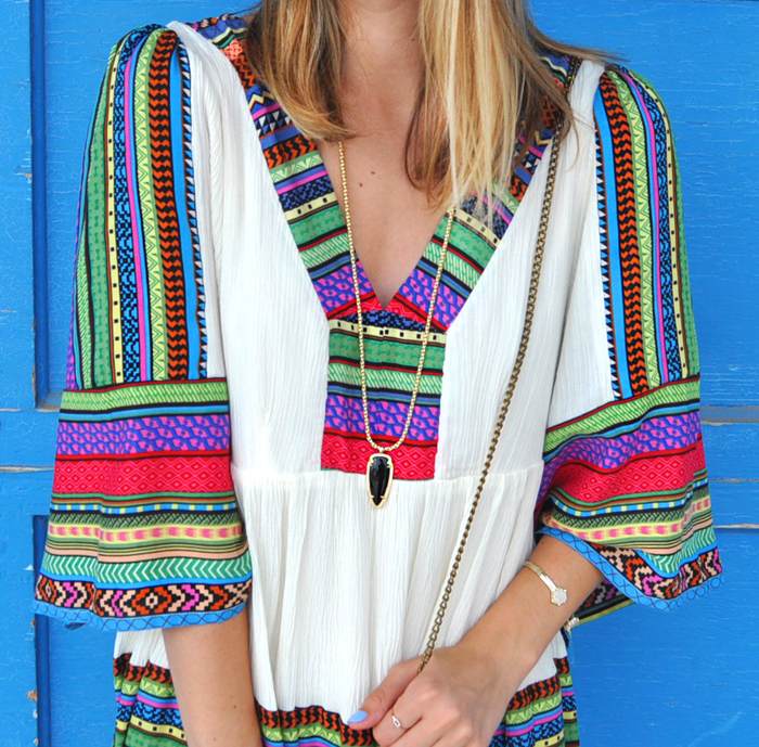 THIS dress! Ah, I am in loooove! I spotted this dress on theĀ adorable Jess Lea Boutique website and knew it would be a summer hit in my wardrobe repertoire. I paired it with my favorite mule wedges to give the look a little more sass – but imagine this dress at a music festival and nix the heels for a pair of gladiator sandals…SO perfect! Such a versatile piece and I love the tribal print and vibrant colors. Definitely a showstopper! (And it leaves plenty of eat/drink/be merry room since it’s not cinched at the waist š – YAY!).