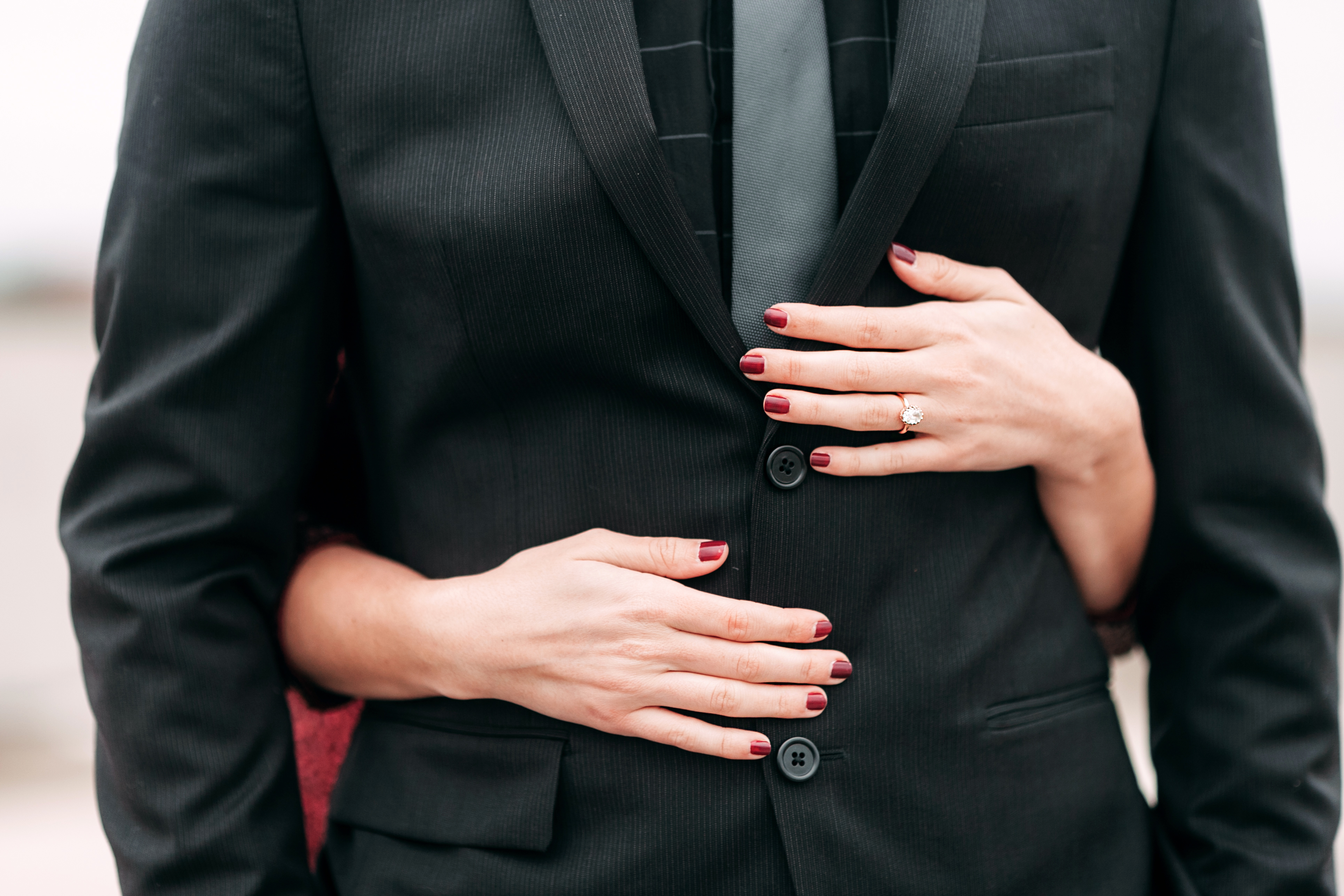 The evening we snapped these photos, we were actually headed to a formal event with Blake’s family and I asked our photographer to meet us beforehand to just to get a few pictures that we could use for our Save The Date cards. It worked out that we were already planning to be super dolled up, so I had to make the most of it (and I only had the dress for three days, ha!) and the timing worked out perfectly – not to mention popping a bottle of bubbly made for a nice little celebratory pre-game to the event, ha. 😉