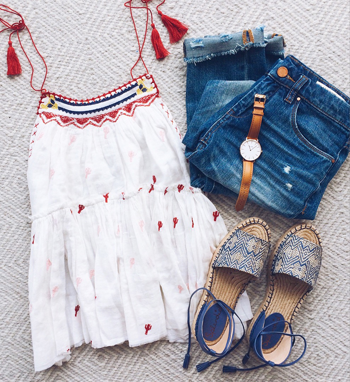 Recently I’ve been drawn to crisp whites, pretty florals and distressed denim…as you probably noticed from my Instagram account! You can never go wrong investing in pretty basics (like this tank top below) and floral prints are just so whimsical and girly (which I am a big fan of, ha), and of course, adding a little distressed look to your jeans brings about that effortlessly cool vibe that’s “so hot right now” as quoted from Zoolander. 😉 Enjoy shopping my latest looks and if you don’t already, you can follow me on Instagram for more outfit inspiration!