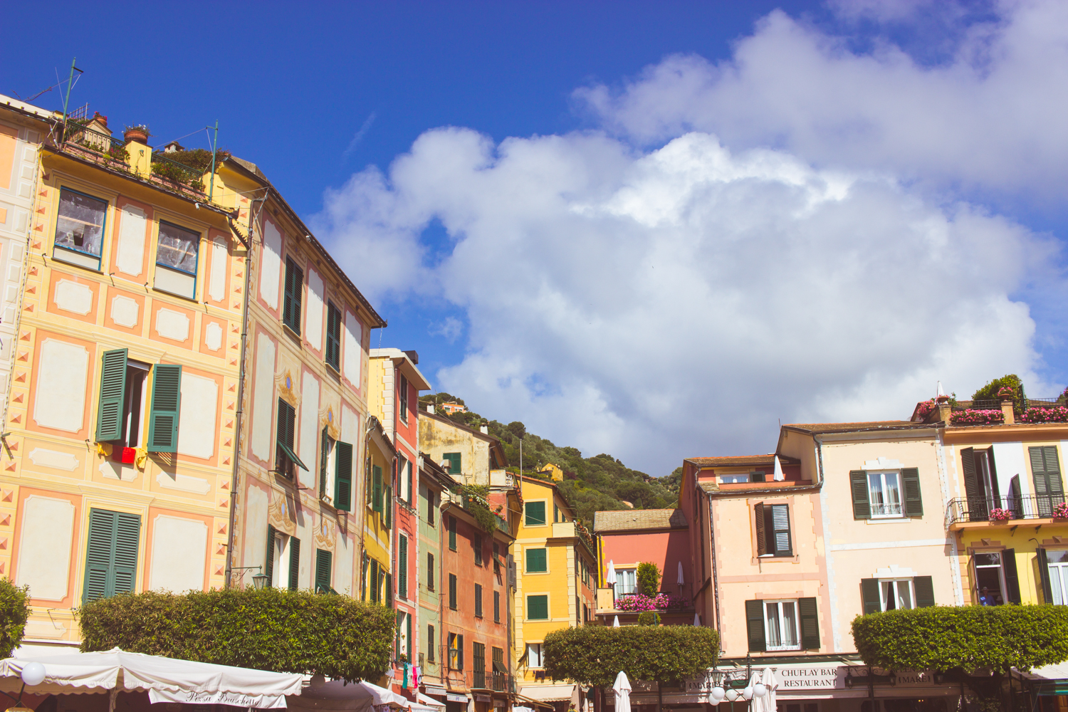 livvyland-blog-olivia-watson-austin-texas-fashion-travel-blogger-princess-royal-mediterranean-cruise-portofino-cinque-terre-italy-what-to-do-see-eat-16We took a small boat to get from our cruise port to Portofino, and once we stepped off the boat my heart pretty much melted…this precious village is SO ROMANTIC and I actually turned to Blake multiple times to ask him if it was real or if I was dreaming…Yep, totally felt like I was on a movie set it looked that perfect. I fell in love with the cobblestone streets, the  vibrant color combinations and the flowers and greenery pouring over every window and balcony… so dreamy and beautiful!livvyland-blog-olivia-watson-austin-texas-fashion-travel-blogger-princess-royal-mediterranean-cruise-portofino-cinque-terre-italy-what-to-do-see-eat-new-darlingsWe stopped at numerous ports throughout our cruise, and at each stop we signed up for different excursions and ventured off the ship to explore a new city/town/village each day (Princess has a TON of amazing excursion options and offerings, this was ours to Portofino here) and there were quite a few days where we were able to meet up with our blogger friends Rob & Christina of New Darlings and enjoy the excursions together! We totally hit it off from day one – this Arizona-based couple is SO sweet, funny and crazy talented, we had so much fun exploring new cities and trying tons of food everywhere we went! Ps. You MUST check out their blog, it’s so so beautiful!livvyland-blog-olivia-watson-austin-texas-fashion-travel-blogger-princess-royal-mediterranean-cruise-portofino-cinque-terre-italy-what-to-do-see-eat-3 livvyland-blog-olivia-watson-austin-texas-fashion-travel-blogger-princess-royal-mediterranean-cruise-portofino-cinque-terre-italy-what-to-do-see-eat-2^^See what I mean? Does this not look like a movie set?! We also learned that the buildings here are actually painted to look multi-deminsional. As you get closer,  you’ll notice the “trompe l’oeil” which is the art technique that creates the 3d illusion.