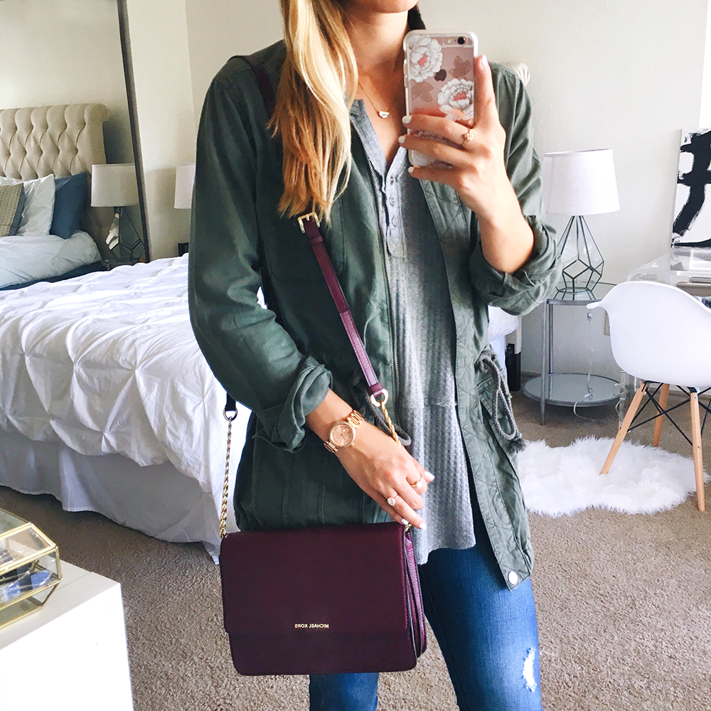 Processed with VSCO with a6 preset^^Ohh y’all know me, sucker for a good utility jacket every year! In LOVE with this awesome and super soft jacket by BP – budget friendly and perfect for layering over a cozy thermal top with jeans and ankle booties. I also busted out that beautiful plum Michael Kors handbag…on sale for just $117!!