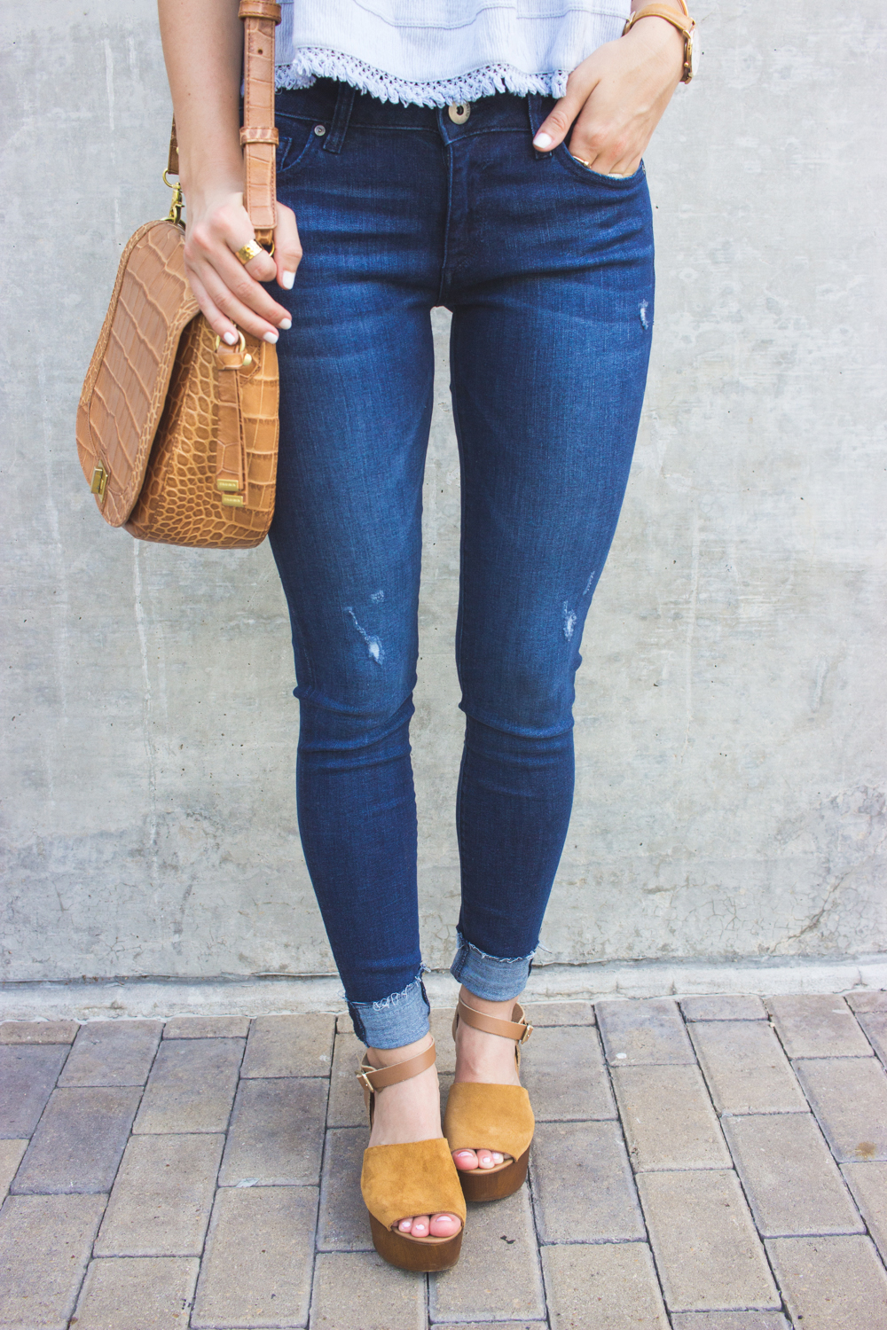 My shoes are by Seychelles and I’ve absolutely put these pretties to good use since they arrived on my doorstep a few months ago! I love the boho vibe that the platform wedge styles exudes, they kind of add that instant “cool girl” touch – and y’all know me, I’m all about that! 😉 My sunglasses are Prada (once again, worth the splurge IMO because there’s nothing like making a coffee run in your pajamas and still feeling chic because of your sunglasses…yep, I’ll drop some dough for that, ha!) and lastly, my necklace is Kendra Scott and a closet staple (I wear it ALL the time, I’m sure you recognize this one!). Love the arrowhead pendant and the filigree detail on it is really gorgeous, always my go-to long, gold necklace.